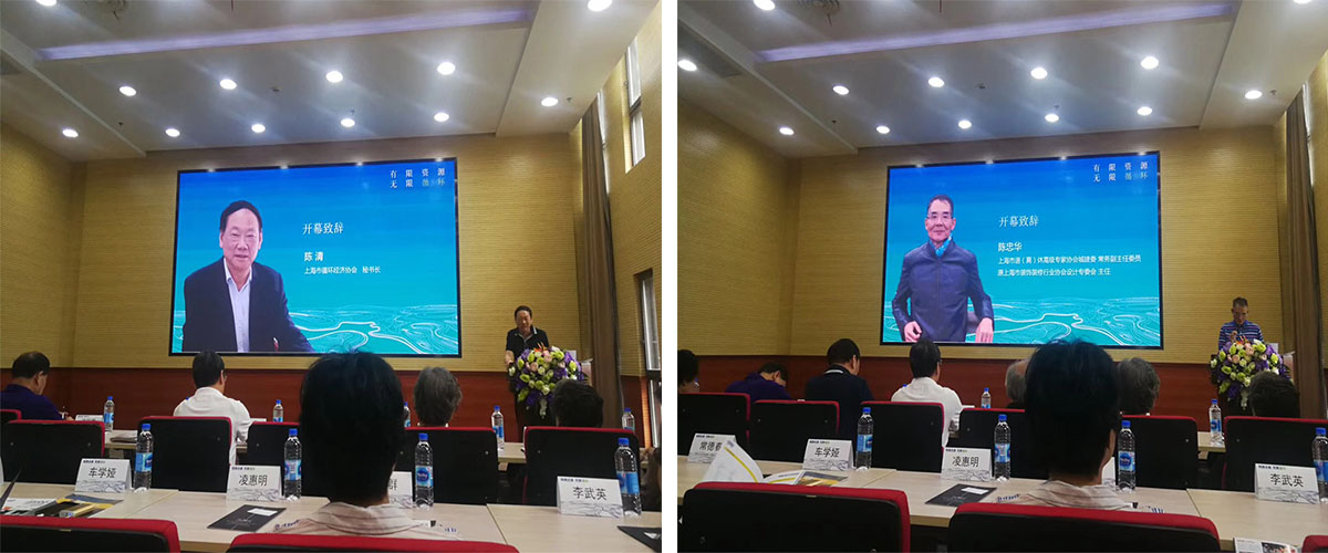 上海市循環(huán)經(jīng)濟(jì)協(xié)會秘書長陳清、原上海市裝飾裝修行業(yè)協(xié)會設(shè)計(jì)委員會主任陳忠華 上臺開幕致辭。